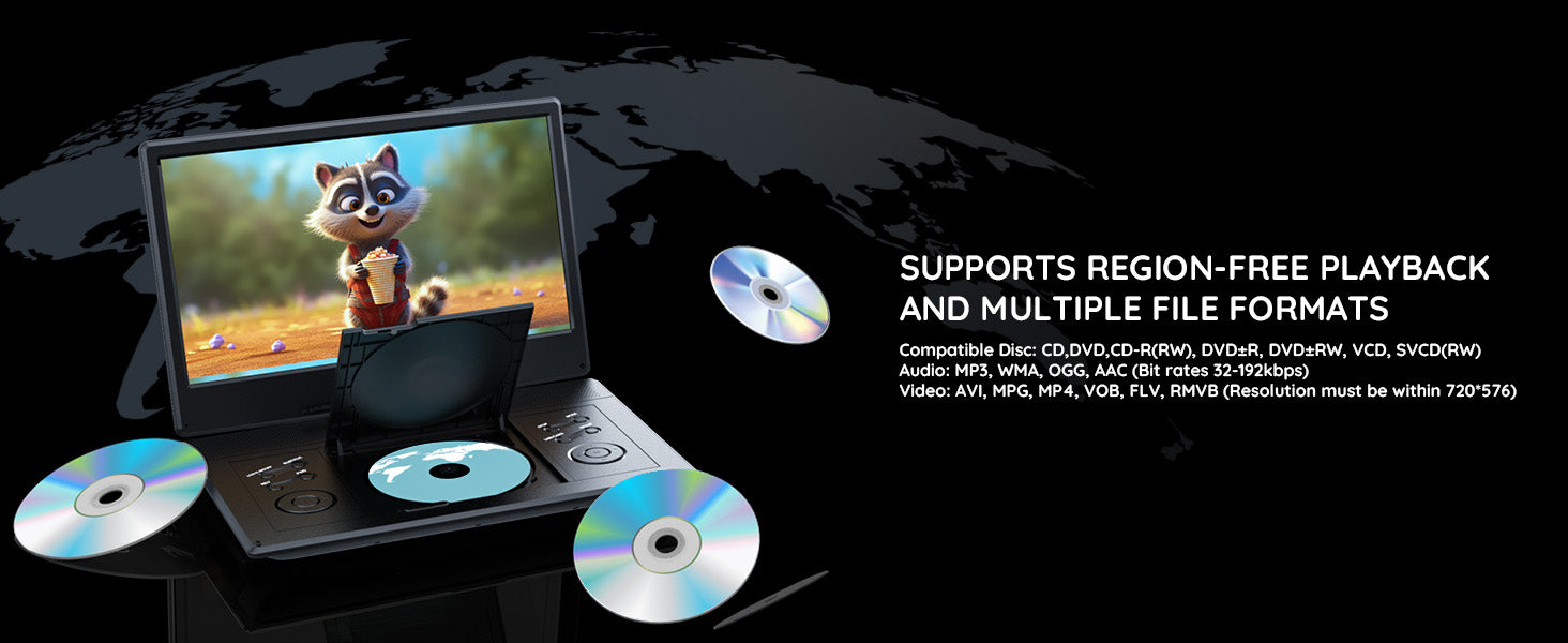 - Anti-Shock Protection: This portable DVD player for kids or parents has anti-skip protection ensures that the DVD player will not interrupt the playback even in the state of shaking and bumping. Also, reduce the noise from the spinning discs. Bring you a better experience during a long trip.